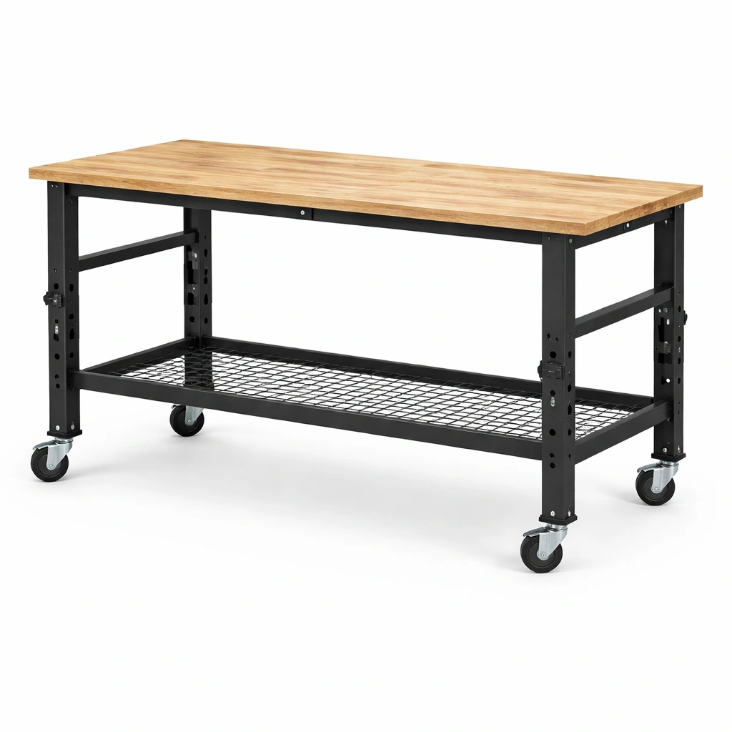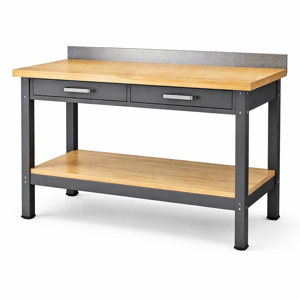 Banco de trabajo de madera y metal 150x75x90 cm